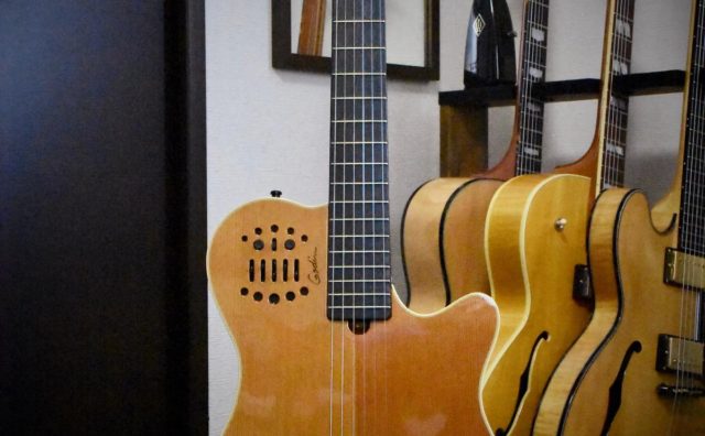 あんまり弾かないんですがクラシックギターを持ってます。と言ってもクラシックは弾けなくて生ギターでもないんですがGodinのMultiac Grand Concert SAというものでシンセにつなげることができるやつです(シンセは使ったことな...